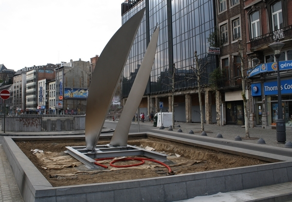 L’œuvre représente deux poissons qui sortent du fleuve. Ils sont évoqués par deux longues lames d’acier en inox, réalisées par les ateliers Melens et Dejardin de Jupille. La sculpture était initialement placée au Carrefour de l’Opéra comme un rappel à l’ancien bras de la Meuse qu’étaient le boulevard d’Avroy et le boulevard de la Sauvenière.
